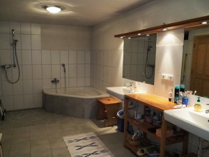 Zwei Toiletten, ein geräumiges Bad mit Eckbadewanne und zwei separaten Duschen machen den Aufenthalt in diesem Ferienhaus auch für eine größere Gruppe und für Familien komfortabel.